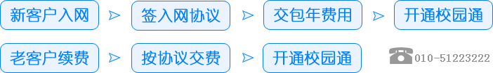 校园通用户按合同金额缴费直接打款到下面的帐户中,资金到帐后合同继续生效。